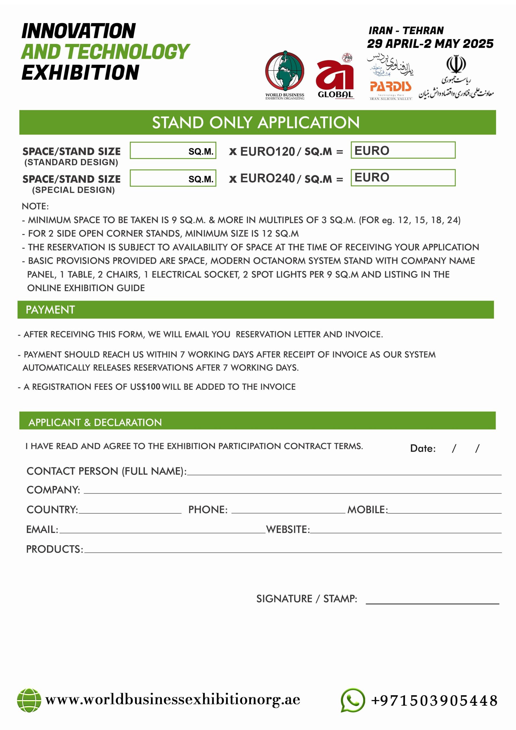 This exhibition is an exciting and innovative space where you can showcase your business skills and expertise to a vibrant audience of stakeholders from Iran and around the globe. Don’t forget, this is the place where you can connect with professionals, investors, and customers all in one spot!